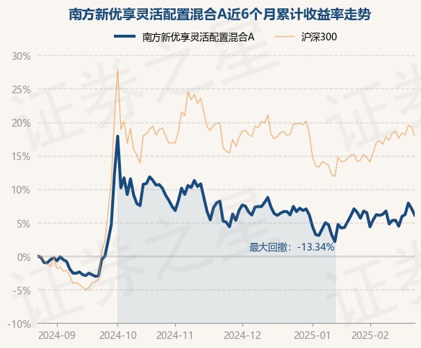 证券之星消息,2月25日,南方新优享灵活配置混合A最新单位净值为3.0877元,累计净值为3.0877元,较前一交易日下跌0.91%。历史数据显示该基金近1个月下跌0.56%,近3个月上涨1.0%,近6个月上涨6.13%,近1年上涨3.16%。该基金近6个月的累计收益率走势如下图: