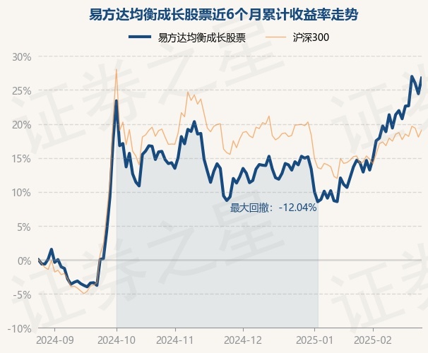 证券之星消息,2月26日,易方达均衡成长股票最新单位净值为1.0139元,累计净值为1.0139元,较前一交易日上涨1.86%。历史数据显示该基金近1个月上涨10.58%,近3个月上涨15.99%,近6个月上涨26.75%,近1年上涨16.33%。该基金近6个月的累计收益率走势如下图: