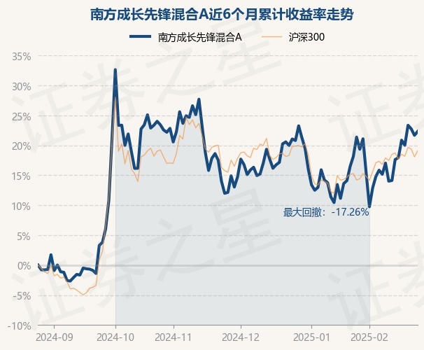 证券之星消息,2月26日,南方成长先锋混合A最新单位净值为0.6937元,累计净值为0.6937元,较前一交易日上涨0.54%。历史数据显示该基金近1个月上涨1.02%,近3个月上涨9.07%,近6个月上涨22.32%,近1年上涨18.7%。该基金近6个月的累计收益率走势如下图: