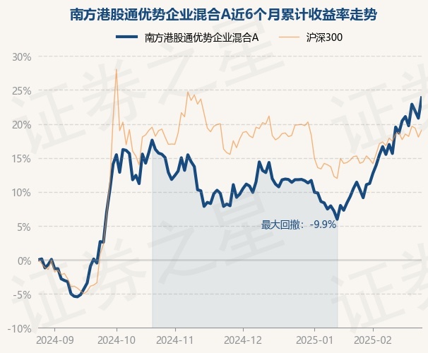 证券之星消息,2月26日,南方港股通优势企业混合A最新单位净值为0.9134元,累计净值为0.9134元,较前一交易日上涨2.49%。历史数据显示该基金近1个月上涨11.51%,近3个月上涨14.72%,近6个月上涨23.85%,近1年上涨28.58%。该基金近6个月的累计收益率走势如下图:
