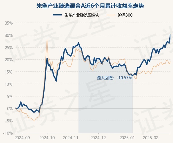 证券之星消息,2月26日,朱雀产业臻选混合A最新单位净值为1.5577元,累计净值为1.5577元,较前一交易日上涨2.66%。历史数据显示该基金近1个月上涨8.35%,近3个月上涨10.41%,近6个月上涨29.99%,近1年上涨17.12%。该基金近6个月的累计收益率走势如下图:
