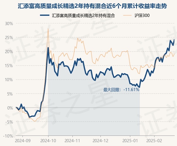 证券之星消息,2月26日,汇添富高质量成长精选2年持有混合最新单位净值为0.5034元,累计净值为0.5034元,较前一交易日上涨1.61%。历史数据显示该基金近1个月上涨9.86%,近3个月上涨13.17%,近6个月上涨24.08%,近1年上涨24.02%。该基金近6个月的累计收益率走势如下图: