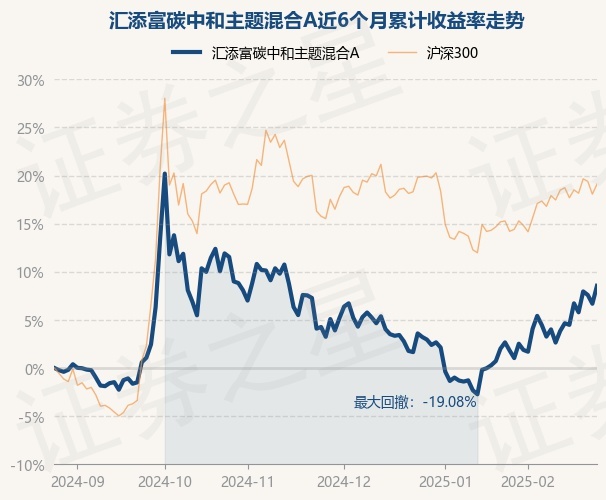 证券之星消息,2月26日,汇添富碳中和主题混合A最新单位净值为0.5249元,累计净值为0.5249元,较前一交易日上涨1.74%。历史数据显示该基金近1个月上涨5.87%,近3个月上涨5.13%,近6个月上涨8.54%,近1年上涨9.65%。该基金近6个月的累计收益率走势如下图: