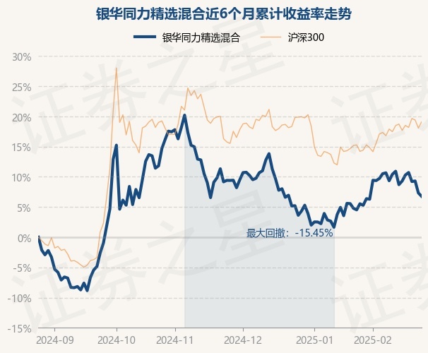 证券之星消息,2月26日,银华同力精选混合最新单位净值为0.8067元,累计净值为0.8067元,较前一交易日下跌0.52%。历史数据显示该基金近1个月上涨0.36%,近3个月下跌2.41%,近6个月上涨6.76%,近1年上涨5.19%。该基金近6个月的累计收益率走势如下图: