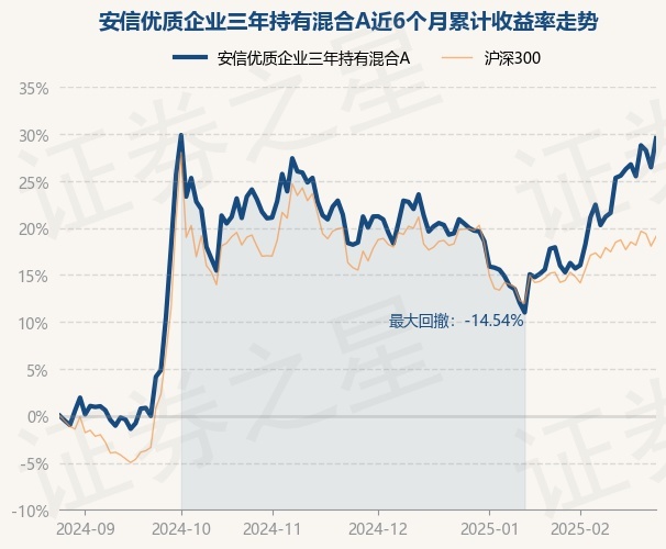 证券之星消息,2月26日,安信优质企业三年持有混合A最新单位净值为0.876元,累计净值为0.876元,较前一交易日上涨2.44%。历史数据显示该基金近1个月上涨11.42%,近3个月上涨9.36%,近6个月上涨29.55%,近1年上涨25.38%。该基金近6个月的累计收益率走势如下图: