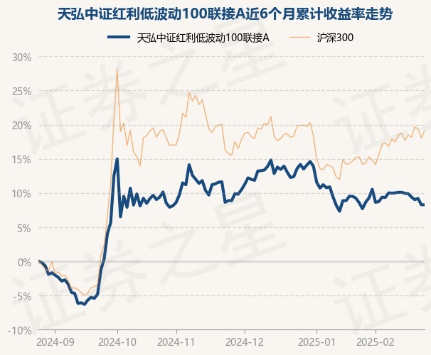 证券之星消息,2月26日,天弘中证红利低波动100联接A最新单位净值为1.642元,累计净值为1.642元,较前一交易日上涨0.0%。历史数据显示该基金近1个月下跌0.04%,近3个月上涨0.34%,近6个月上涨9.23%,近1年上涨7.76%。该基金近6个月的累计收益率走势如下图:
