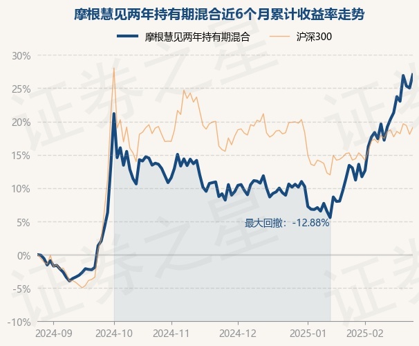 证券之星消息,2月26日,摩根慧见两年持有期混合最新单位净值为0.8372元,累计净值为0.8372元,较前一交易日上涨1.6%。历史数据显示该基金近1个月上涨11.84%,近3个月上涨17.4%,近6个月上涨27.02%,近1年上涨27.91%。该基金近6个月的累计收益率走势如下图: