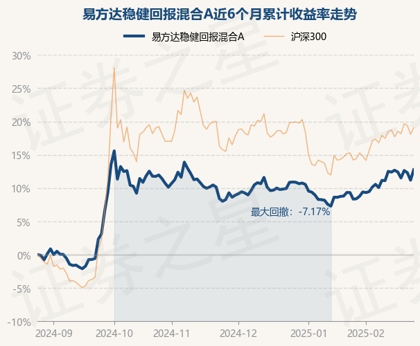 证券之星消息,2月26日,易方达稳健回报混合A最新单位净值为0.8815元,累计净值为0.8815元,较前一交易日上涨1.43%。历史数据显示该基金近1个月上涨3.67%,近3个月上涨4.15%,近6个月上涨12.77%,近1年上涨11.4%。该基金近6个月的累计收益率走势如下图: