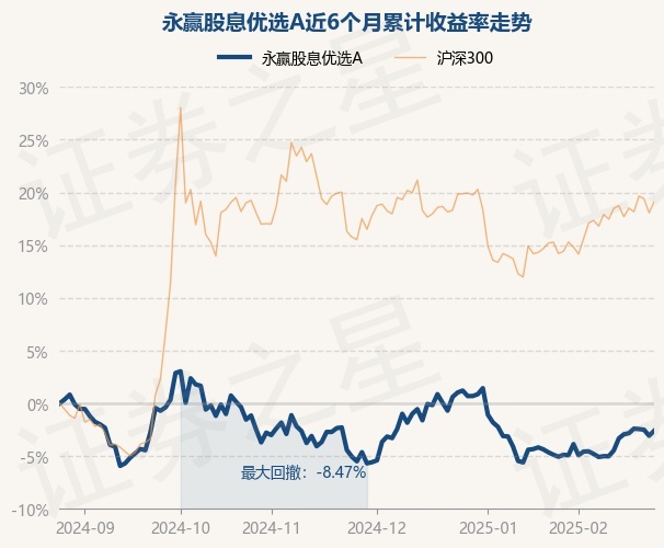证券之星消息,2月26日,永赢股息优选A最新单位净值为1.3322元,累计净值为1.3322元,较前一交易日上涨0.48%。历史数据显示该基金近1个月上涨2.44%,近3个月上涨3.06%,近6个月下跌2.6%,近1年上涨8.31%。该基金近6个月的累计收益率走势如下图: