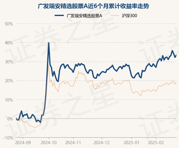 证券之星消息,2月26日,广发瑞安精选股票A最新单位净值为0.883元,累计净值为0.883元,较前一交易日上涨0.8%。历史数据显示该基金近1个月上涨3.5%,近3个月上涨9.92%,近6个月上涨33.26%,近1年上涨28.57%。该基金近6个月的累计收益率走势如下图: