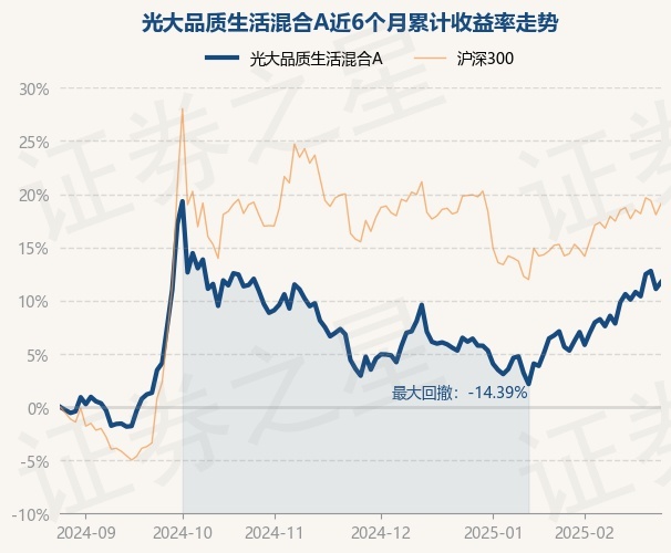 证券之星消息,2月26日,光大品质生活混合A最新单位净值为0.6677元,累计净值为0.6677元,较前一交易日上涨0.57%。历史数据显示该基金近1个月上涨5.2%,近3个月上涨8.53%,近6个月上涨11.73%,近1年上涨6.9%。该基金近6个月的累计收益率走势如下图: