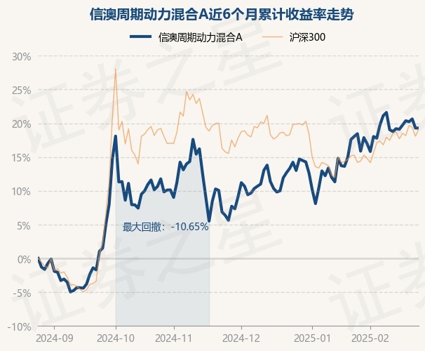 证券之星消息,2月26日,信澳周期动力混合A最新单位净值为1.3201元,累计净值为1.3201元,较前一交易日上涨0.0%。历史数据显示该基金近1个月上涨2.99%,近3个月上涨14.91%,近6个月上涨21.39%,近1年上涨17.09%。该基金近6个月的累计收益率走势如下图: