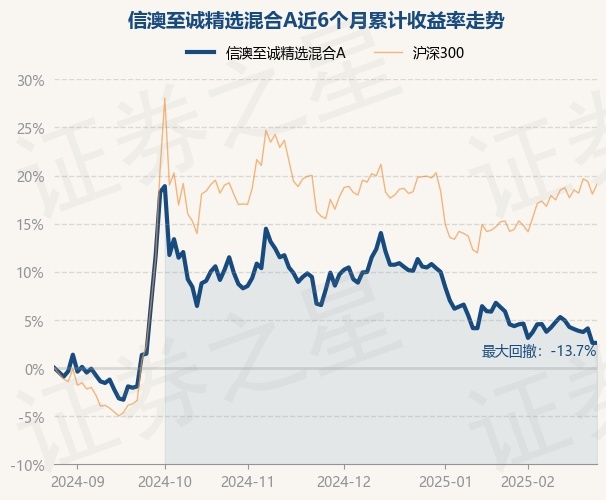 证券之星消息,2月26日,信澳至诚精选混合A最新单位净值为0.4387元,累计净值为0.4387元,较前一交易日上涨0.0%。历史数据显示该基金近1个月下跌1.24%,近3个月下跌4.53%,近6个月上涨3.25%,近1年下跌11.82%。该基金近6个月的累计收益率走势如下图: