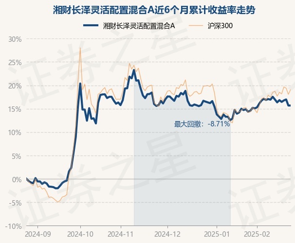 证券之星消息,2月26日,湘财长泽灵活配置混合A最新单位净值为1.3082元,累计净值为1.4507元,较前一交易日上涨0.0%。历史数据显示该基金近1个月上涨0.94%,近3个月上涨0.45%,近6个月上涨16.27%,近1年上涨18.56%。该基金近6个月的累计收益率走势如下图: