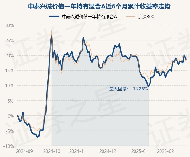 证券之星消息,2月26日,中泰兴诚价值一年持有混合A最新单位净值为1.254元,累计净值为1.254元,较前一交易日上涨0.0%。历史数据显示该基金近1个月上涨5.31%,近3个月上涨4.02%,近6个月上涨20.65%,近1年上涨13.47%。该基金近6个月的累计收益率走势如下图: