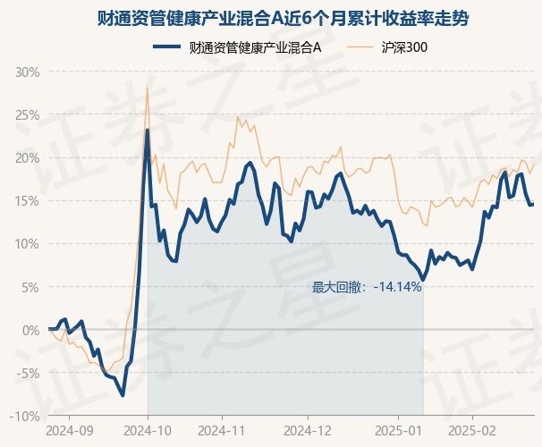 证券之星消息,2月26日,财通资管健康产业混合A最新单位净值为0.9075元,累计净值为0.9075元,较前一交易日上涨0.08%。历史数据显示该基金近1个月上涨6.31%,近3个月上涨3.94%,近6个月上涨14.5%,近1年下跌2.42%。该基金近6个月的累计收益率走势如下图: