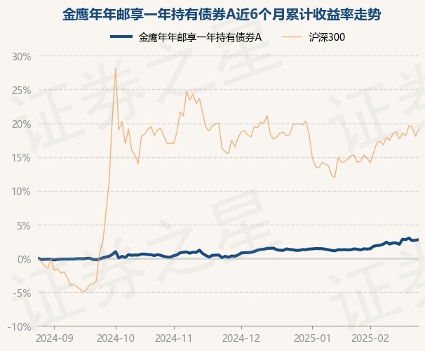证券之星消息,2月26日,金鹰年年邮享一年持有债券A最新单位净值为1.0893元,累计净值为1.0893元,较前一交易日上涨0.08%。历史数据显示该基金近1个月上涨1.33%,近3个月上涨2.61%,近6个月上涨2.76%,近1年上涨4.89%。该基金近6个月的累计收益率走势如下图: