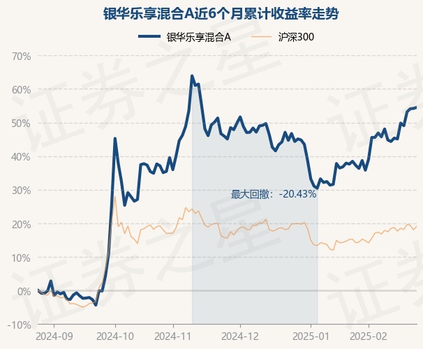 证券之星消息,2月26日,银华乐享混合A最新单位净值为0.73元,累计净值为0.73元,较前一交易日上涨0.19%。历史数据显示该基金近1个月上涨11.4%,近3个月上涨6.48%,近6个月上涨54.5%,近1年上涨35.39%。该基金近6个月的累计收益率走势如下图: