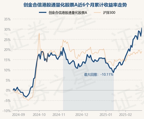 证券之星消息,2月26日,创金合信港股通量化股票A最新单位净值为0.8588元,累计净值为0.8588元,较前一交易日上涨3.07%。历史数据显示该基金近1个月上涨14.43%,近3个月上涨17.82%,近6个月上涨30.42%,近1年上涨38.09%。该基金近6个月的累计收益率走势如下图: