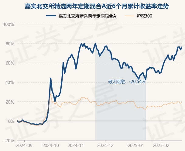 证券之星消息,2月26日,嘉实北交所精选两年定期混合A最新单位净值为0.8979元,累计净值为0.8979元,较前一交易日上涨1.56%。历史数据显示该基金近1个月上涨15.81%,近3个月上涨5.6%,近6个月上涨76.16%,近1年上涨45.95%。该基金近6个月的累计收益率走势如下图: