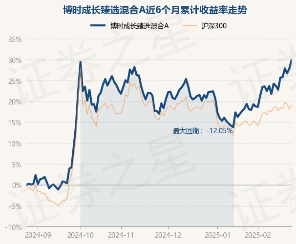 证券之星消息,2月26日,博时成长臻选混合A最新单位净值为1.042元,累计净值为1.042元,较前一交易日上涨1.6%。历史数据显示该基金近1个月上涨8.89%,近3个月上涨11.02%,近6个月上涨29.93%,近1年上涨28.06%。该基金近6个月的累计收益率走势如下图: