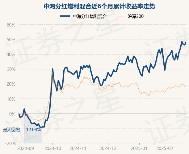 证券之星消息,2月26日,中海分红增利混合最新单位净值为0.7431元,累计净值为2.4911元,较前一交易日上涨1.31%。历史数据显示该基金近1个月上涨2.97%,近3个月上涨24.18%,近6个月上涨48.12%,近1年上涨37.2%。该基金近6个月的累计收益率走势如下图: