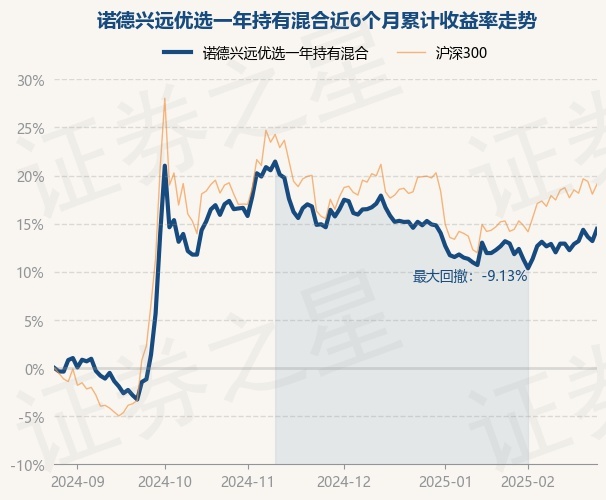 证券之星消息,2月26日,诺德兴远优选一年持有混合最新单位净值为0.7731元,累计净值为0.7731元,较前一交易日上涨1.11%。历史数据显示该基金近1个月上涨1.84%,近3个月下跌0.15%,近6个月上涨14.45%,近1年上涨7.46%。该基金近6个月的累计收益率走势如下图: