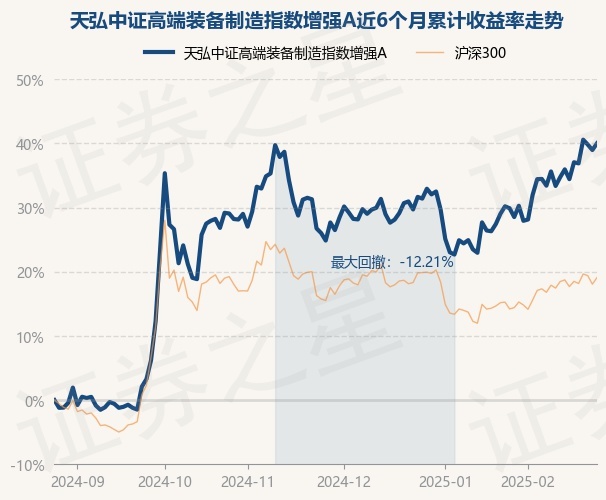 证券之星消息,2月26日,天弘中证高端装备制造指数增强A最新单位净值为0.9104元,累计净值为0.9104元,较前一交易日上涨0.75%。历史数据显示该基金近1个月上涨7.47%,近3个月上涨12.13%,近6个月上涨40.02%,近1年上涨37.09%。该基金近6个月的累计收益率走势如下图: