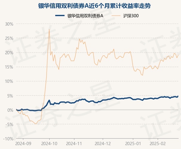 证券之星消息,2月26日,银华信用双利债券A最新单位净值为1.179元,累计净值为1.739元,较前一交易日上涨0.34%。历史数据显示该基金近1个月上涨0.68%,近3个月上涨2.17%,近6个月上涨4.71%,近1年上涨5.93%。该基金近6个月的累计收益率走势如下图: