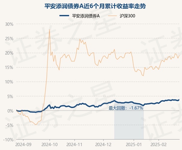 证券之星消息,2月26日,平安添润债券A最新单位净值为1.1068元,累计净值为1.1068元,较前一交易日上涨0.29%。历史数据显示该基金近1个月上涨1.17%,近3个月上涨2.47%,近6个月上涨3.71%,近1年上涨6.13%。该基金近6个月的累计收益率走势如下图: