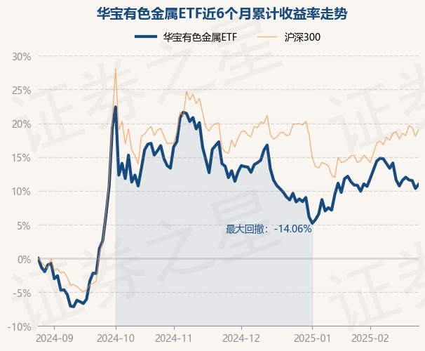 证券之星消息,2月26日,华宝有色金属ETF最新单位净值为1.0822元,累计净值为1.0822元,较前一交易日上涨0.56%。历史数据显示该基金近1个月下跌0.06%,近3个月下跌0.88%,近6个月上涨10.96%,近1年上涨13.87%。该基金近6个月的累计收益率走势如下图: