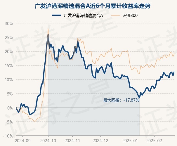 证券之星消息,2月26日,广发沪港深精选混合A最新单位净值为0.9024元,累计净值为0.9024元,较前一交易日上涨1.28%。历史数据显示该基金近1个月上涨5.09%,近3个月上涨2.1%,近6个月上涨12.81%,近1年上涨15.1%。该基金近6个月的累计收益率走势如下图: