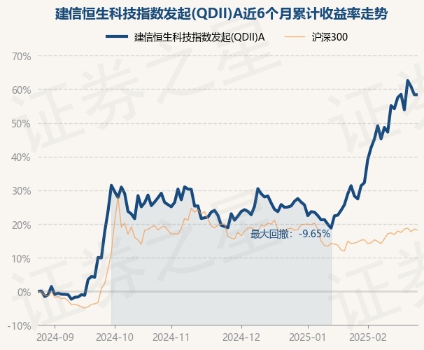 证券之星消息,2月26日,建信恒生科技指数发起(QDII)A最新单位净值为1.7336元,累计净值为1.7336元,较前一交易日上涨0.0%。历史数据显示该基金近1个月上涨25.68%,近3个月上涨38.83%,近6个月上涨65.04%,近1年上涨70.55%。该基金近6个月的累计收益率走势如下图:
