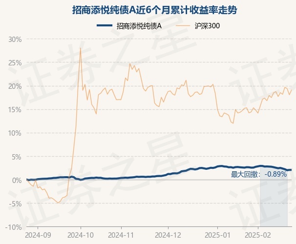 证券之星消息,2月26日,招商添悦纯债A最新单位净值为1.0507元,累计净值为1.2525元,较前一交易日上涨0.0%。历史数据显示该基金近1个月下跌0.48%,近3个月上涨1.28%,近6个月上涨2.06%,近1年上涨4.12%。该基金近6个月的累计收益率走势如下图: