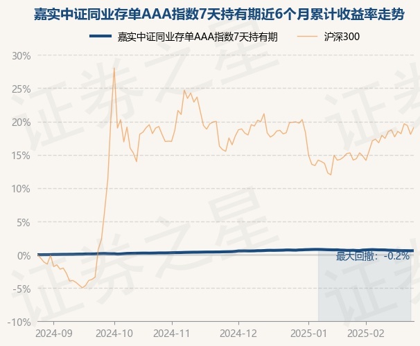 证券之星消息,2月26日,嘉实中证同业存单AAA指数7天持有期最新单位净值为1.0578元,累计净值为1.0578元,较前一交易日上涨0.01%。历史数据显示该基金近1个月下跌0.02%,近3个月上涨0.16%,近6个月上涨0.6%,近1年上涨1.61%。该基金近6个月的累计收益率走势如下图: