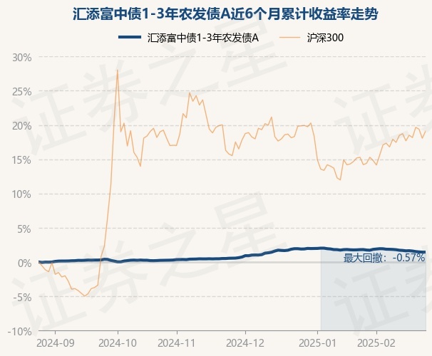 证券之星消息,2月26日,汇添富中债1-3年农发债A最新单位净值为1.0357元,累计净值为1.1895元,较前一交易日上涨0.0%。历史数据显示该基金近1个月下跌0.27%,近3个月上涨0.88%,近6个月上涨1.44%,近1年上涨3.55%。该基金近6个月的累计收益率走势如下图: