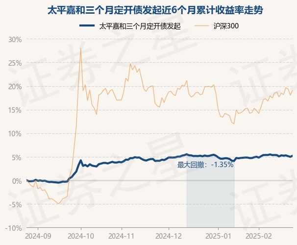 证券之星消息,2月26日,太平嘉和三个月定开债发起最新单位净值为1.0542元,累计净值为1.0542元,较前一交易日上涨0.22%。历史数据显示该基金近1个月上涨0.29%,近3个月上涨1.03%,近6个月上涨5.21%,近1年上涨5.03%。该基金近6个月的累计收益率走势如下图: