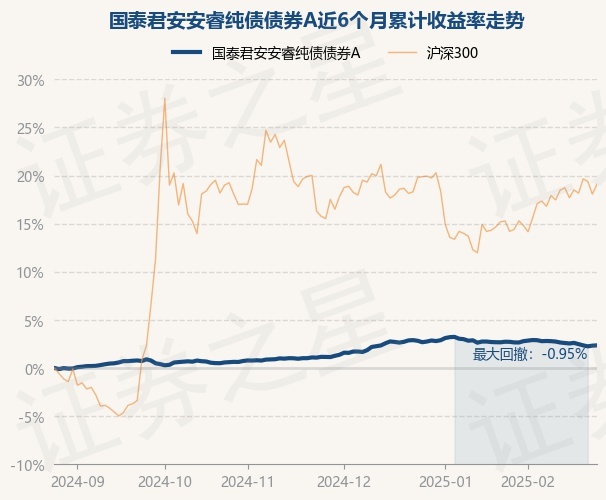 证券之星消息,2月26日,国泰君安安睿纯债债券A最新单位净值为1.0265元,累计净值为1.0615元,较前一交易日上涨0.03%。历史数据显示该基金近1个月下跌0.29%,近3个月上涨1.19%,近6个月上涨2.35%,近1年上涨4.65%。该基金近6个月的累计收益率走势如下图: