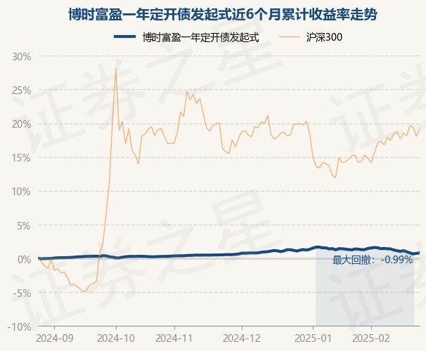 证券之星消息,2月26日,博时富盈一年定开债发起式最新单位净值为1.0493元,累计净值为1.0507元,较前一交易日上涨0.05%。历史数据显示该基金近1个月下跌0.49%,近3个月上涨0.24%,近6个月上涨0.8%,近1年上涨2.55%。该基金近6个月的累计收益率走势如下图: