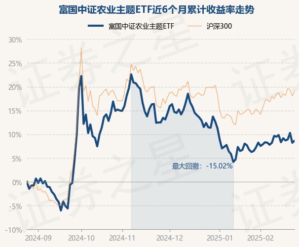 证券之星消息,2月26日,富国中证农业主题ETF最新单位净值为0.6495元,累计净值为0.6495元,较前一交易日上涨0.39%。历史数据显示该基金近1个月上涨1.29%,近3个月下跌3.42%,近6个月上涨8.63%,近1年下跌4.64%。该基金近6个月的累计收益率走势如下图: