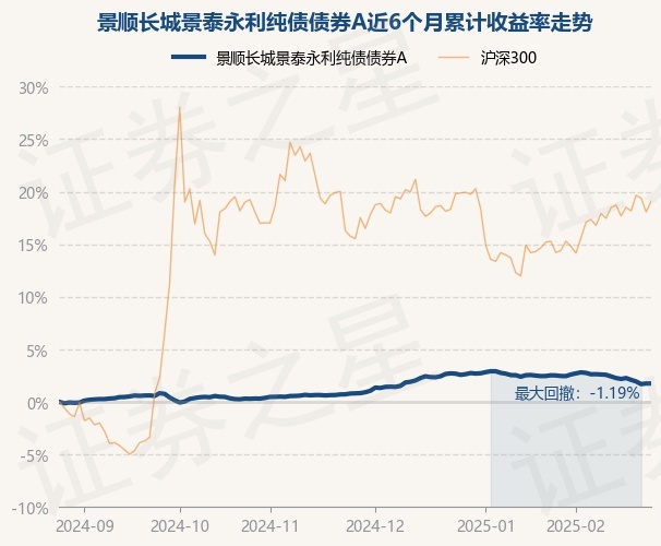 证券之星消息,2月26日,景顺长城景泰永利纯债债券A最新单位净值为1.0577元,累计净值为1.0771元,较前一交易日上涨0.0%。历史数据显示该基金近1个月下跌0.69%,近3个月上涨0.93%,近6个月上涨1.75%,近1年上涨3.93%。该基金近6个月的累计收益率走势如下图: