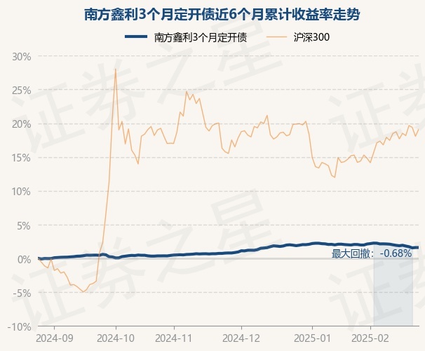 证券之星消息,2月26日,南方鑫利3个月定开债最新单位净值为1.2485元,累计净值为1.2485元,较前一交易日上涨0.0%。历史数据显示该基金近1个月下跌0.36%,近3个月上涨0.81%,近6个月上涨1.61%,近1年上涨3.51%。该基金近6个月的累计收益率走势如下图: