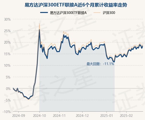 证券之星消息,2月26日,易方达沪深300ETF联接A最新单位净值为1.5649元,累计净值为1.5649元,较前一交易日上涨0.82%。历史数据显示该基金近1个月上涨3.14%,近3个月上涨3.28%,近6个月上涨18.33%,近1年上涨16.72%。该基金近6个月的累计收益率走势如下图: