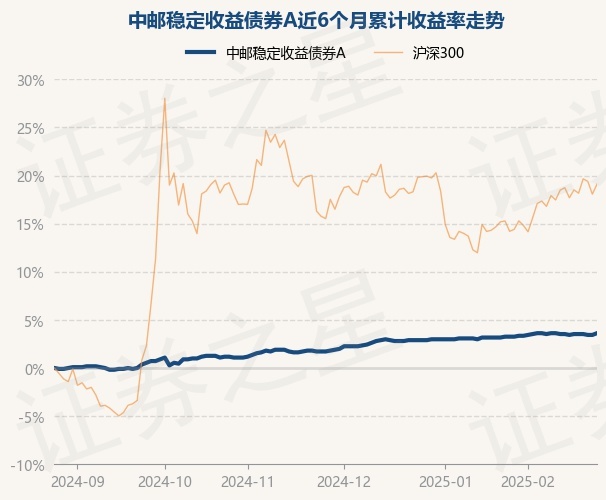 证券之星消息,2月26日,中邮稳定收益债券A最新单位净值为1.145元,累计净值为1.693元,较前一交易日上涨0.17%。历史数据显示该基金近1个月上涨0.26%,近3个月上涨1.87%,近6个月上涨3.62%,近1年上涨4.95%。该基金近6个月的累计收益率走势如下图: