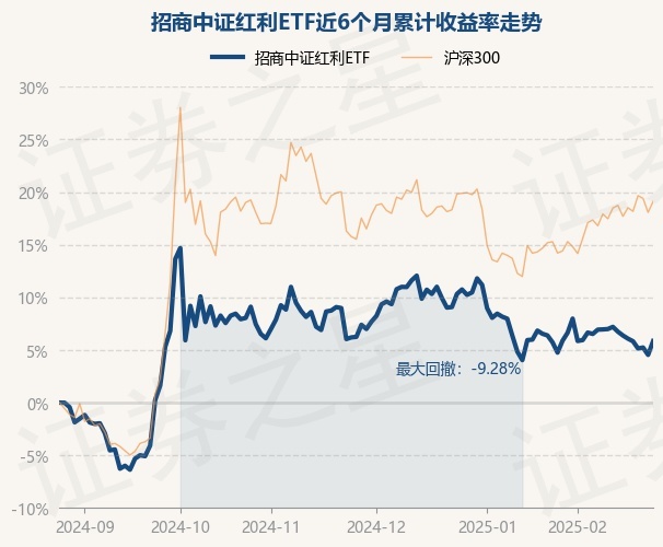 证券之星消息,2月26日,招商中证红利ETF最新单位净值为1.4853元,累计净值为1.8053元,较前一交易日上涨1.25%。历史数据显示该基金近1个月下跌0.75%,近3个月下跌0.39%,近6个月上涨5.83%,近1年上涨3.57%。该基金近6个月的累计收益率走势如下图:
