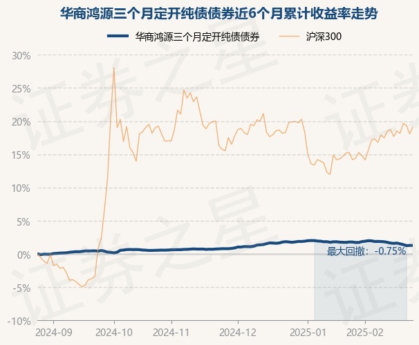 证券之星消息,2月26日,华商鸿源三个月定开纯债债券最新单位净值为1.021元,累计净值为1.074元,较前一交易日上涨0.0%。历史数据显示该基金近1个月下跌0.45%,近3个月上涨0.48%,近6个月上涨1.27%,近1年上涨2.35%。该基金近6个月的累计收益率走势如下图: