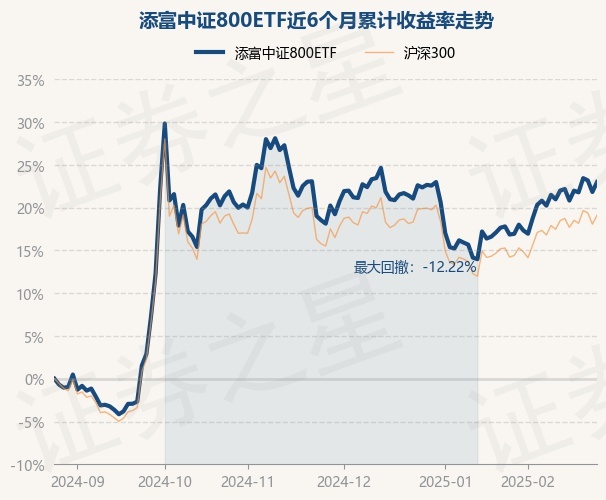 证券之星消息,2月26日,添富中证800ETF最新单位净值为1.0334元,累计净值为1.1454元,较前一交易日上涨0.95%。历史数据显示该基金近1个月上涨4.22%,近3个月上涨4.11%,近6个月上涨22.98%,近1年上涨18.12%。该基金近6个月的累计收益率走势如下图: