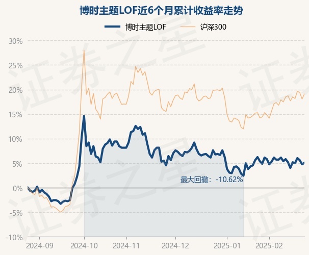 证券之星消息,2月26日,博时主题LOF最新单位净值为0.993元,累计净值为5.688元,较前一交易日上涨0.3%。历史数据显示该基金近1个月下跌1.0%,近3个月上涨0.51%,近6个月上涨5.08%,近1年上涨3.87%。该基金近6个月的累计收益率走势如下图: