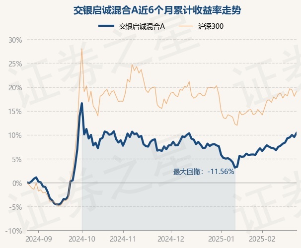 证券之星消息,2月26日,交银启诚混合A最新单位净值为1.1128元,累计净值为1.1128元,较前一交易日上涨0.76%。历史数据显示该基金近1个月上涨3.53%,近3个月上涨3.53%,近6个月上涨10.37%,近1年上涨8.77%。该基金近6个月的累计收益率走势如下图: