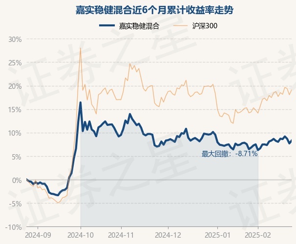 证券之星消息,2月26日,嘉实稳健混合最新单位净值为1.4692元,累计净值为3.8979元,较前一交易日上涨0.55%。历史数据显示该基金近1个月上涨0.96%,近3个月上涨1.05%,近6个月上涨8.3%,近1年上涨9.11%。该基金近6个月的累计收益率走势如下图: